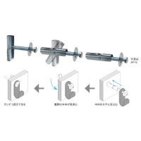 ・下穴から水平に差し込んで、壁裏側の本体が垂直に立ち、壁面と取付物をしっかり固定することができる