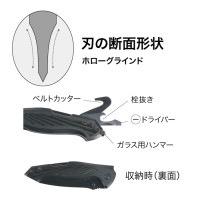 ・付属機能付:(ベルトカッター・栓抜き・マイナスドライバー・ガラス用ハンマー)