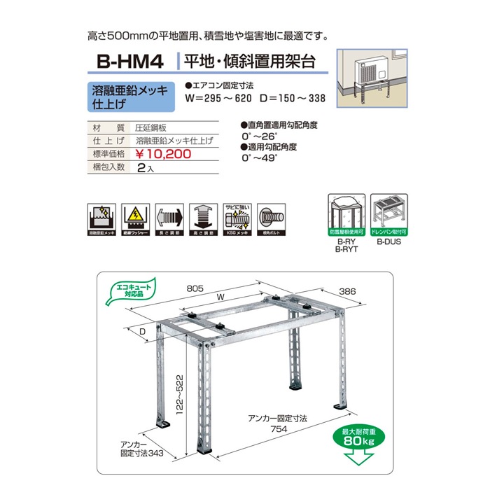 バクマ工業 B-HM4 エアコン室外ユニット用据付架台 平地・傾斜置用 溶融亜鉛メッキ仕上げ 【取寄商品】