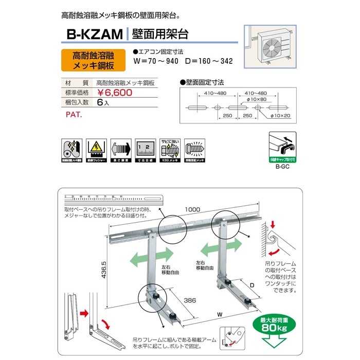 バクマ工業 B-KZAM エアコン室外ユニット用据付架台 壁面用 高耐蝕溶融メッキ鋼板