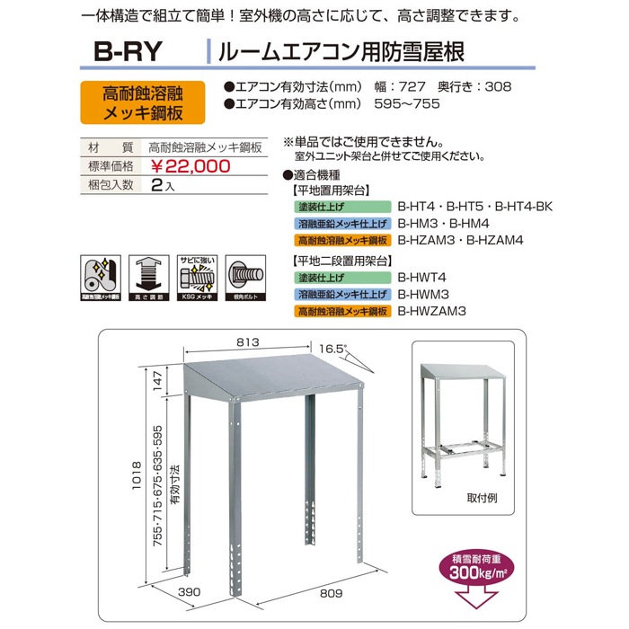 バクマ工業 B-RY エアコン室外ユニット用据付架台 ルームエアコン用防雪屋根 ZAM製 【取寄商品】