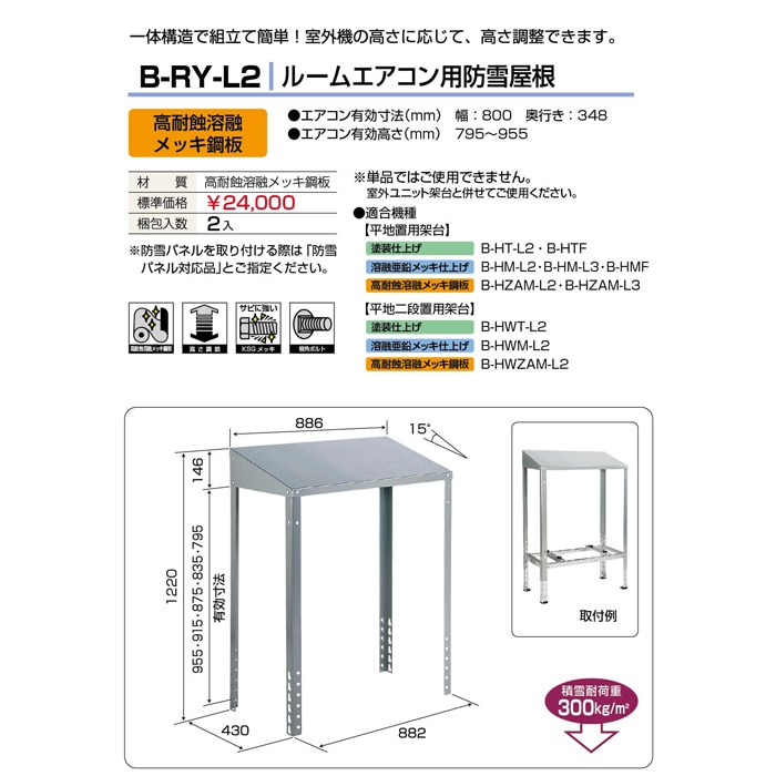 バクマ工業 B-RY-L2 エアコン室外ユニット用据付架台 ルームエアコン用防雪屋根 ZAM製【取寄商品】