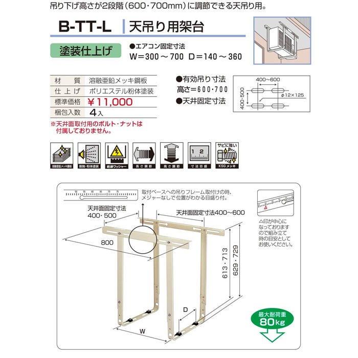 バクマ工業 B-TT-L エアコン室外ユニット用据付架台 天吊り用 塗装仕上げ 【取寄商品】