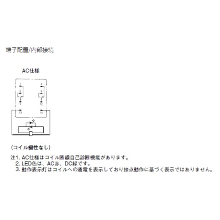 ・コイル定格:AC200V 50Hz 6.2mA / AC200V 60Hz 5.3mA / AC220V 50Hz 6.8mA / AC220V 60Hz 5.8mA